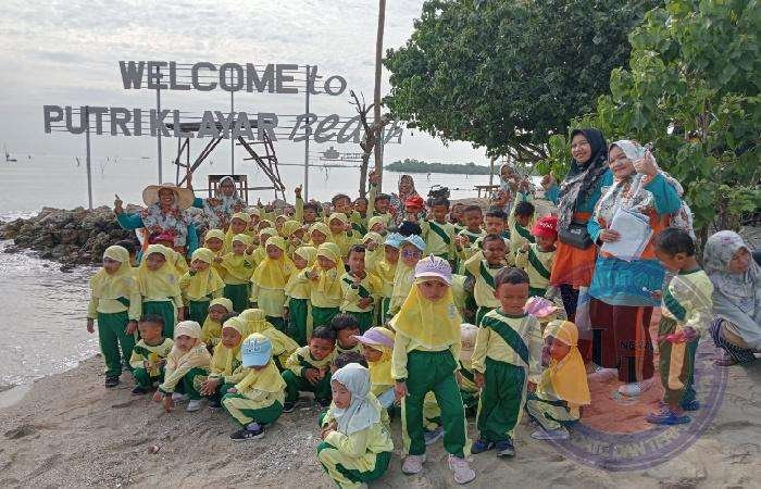78 peserta didik PAUD Aisyiyah ini langsung terjun ke pantai berhamburan penuh riang pertanda hati suka melihat luasnya pantai dengan hamparan pasir nan lembut dan bersih. Dalam kegiatan ini tak lupa mama-mama yang ikut mengawal anaknya membawa bekal makanan dan minuman untuk dimakan bareng-bareng. Dan bila makanan tidak habis biasanya dibagi sesama mereka dalam acara pembagian gono-gini.