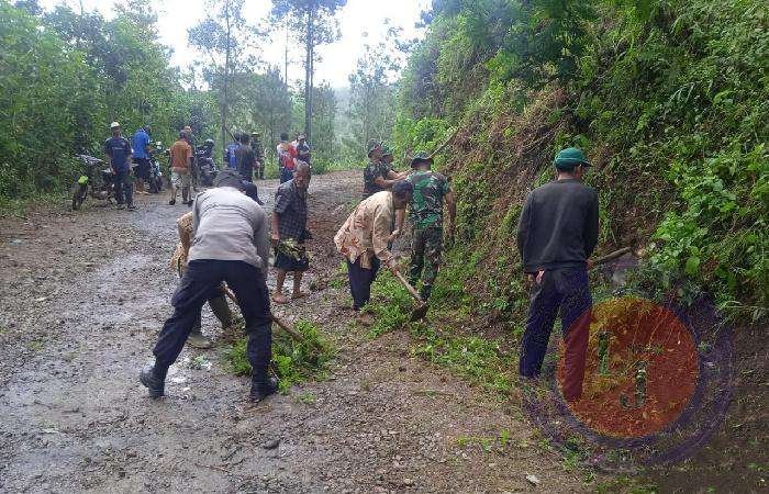 Satgas TMMD Kodim 0806/Trenggalek Bantu Warga Bersihkan Jalan di Dusun Ndilem
