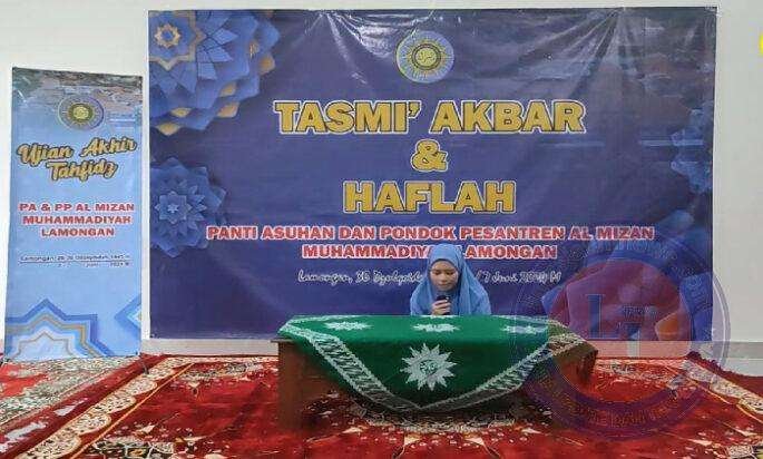 LAMONGAN Lintasjatimnews.com – Panti Asuhan dan Pondok Pesantren (PA dan PP) Al Mizan Muhammadiyah Lamongan menggelar Tasmi’ Akbar dan Haflah untuk santri yang telah hafal 30 Juz Al-Qur’an pada Jumat, 7 Juni 2024, di Pondok Tahfidz Putri Al Mizan.