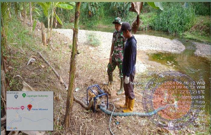 Pada kesempatan ini, pihaknya membantu petani dalam mengairi lahan sawah dengan menggunakan mesin pompa air, berada di Desa Sumber Rejo, Kec. Sudimoro, Kab. Pacitan, Minggu (09/06/2024).