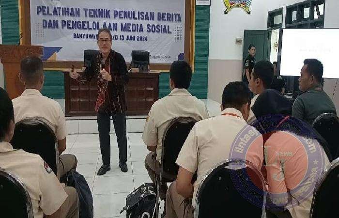 BANYUWANGI lintasjatimnews.com – Komando Distrik Militer (Kodim) 0825/Banyuwangi melakukan kegiatan pelatihan Teknik Penulisan Berita dan Pengelolaan Media Sosial pada anggota Koramil, di Aula kodim, Selasa (11/6/04).