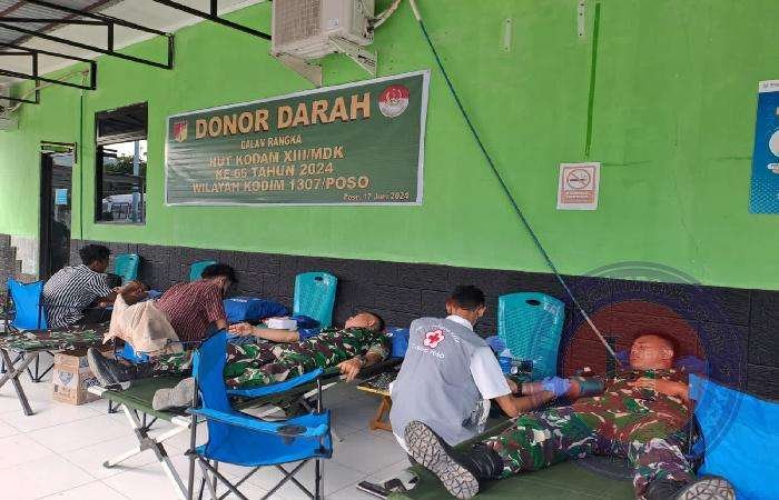 POSO lintasjatimnews.com – Dalam rangka memperingati Hari Ulang Tahun (HUT) Kodam XIII/Merdeka ke-66 tahun 2024, Kodim 1307/Poso menggelar kegiatan donor darah. Rabu, (12/06/2024).