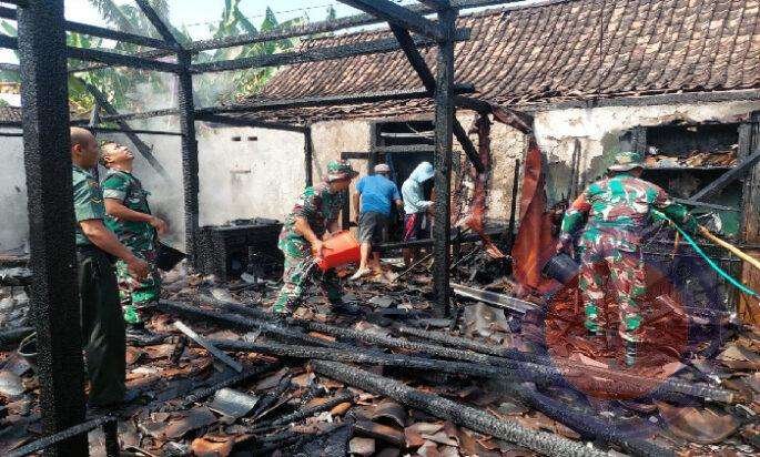 “Bersama petugas Damkar, kepolisian dan dibantu masyarakat kita bergotong royong memadamkan kobaran api yang telah membakar rumah warga. Alhamdulillah setelah berselang beberapa waktu api dapat dipadamkan,”ujar Danramil.