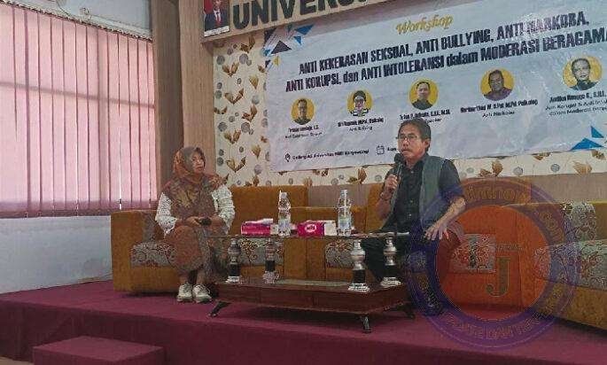 Workshop pada hari ini mengundanghadirkan 4 narasumber yaitu Siti Napisah, S.Psi., M.Psi., Psikolog., Heriberthus Wicaksono, S.Psi., M.Pd., Psikolog, Andika Ronggo G., S.Hi., M.H., dan Firdaus Samboja, S.S. yang masing-masing berbagi bahasan tentang 6 anti. Namun demikian, juga hadir narasumber eksternal, yaitu Ahmed Kurnia Soeriawidjaja (Ketua Bidang Luar Negeri Persatuan Wartawan Indonesia/ PWI Pusat) yang kebetulan sedang berada di Banyuwangi.