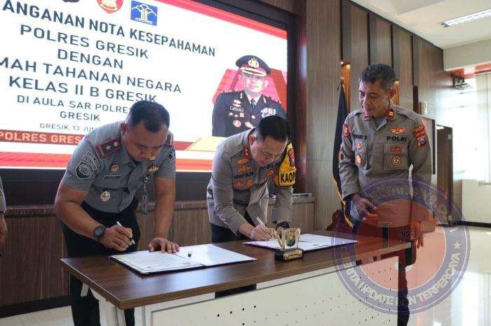 Kapolres Gresik AKBP Adhitya Panji Anom, mengatakan bahwa MoU ini bertujuan untuk mencapai optimalisasi tugas dan fungsi serta meningkatkan koordinasi dan sinergitas antara Rutan Kelas IIB Gresik dan Polres Gresik.