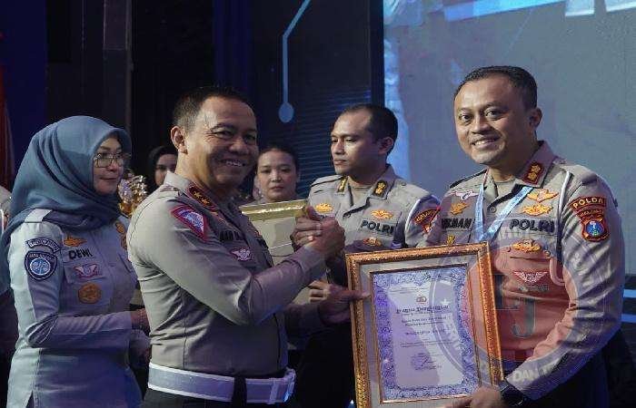Penghargaan tersebut diserahkan langsung oleh Kapolri Jenderal Polisi Listyo Sigit Prabowo saat menghadiri Rakernis Fungsi Lantas tahun 2024 di Yogyakarta, Rabu (12/6).