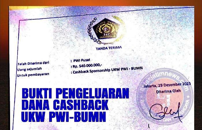 Dalam bukti Tanda Terima berlogo PWI (Persatuan Wartawan Indonesia) tertanggal 29 Desember 2023 disebutkan untuk pembayaran Cashback Sponsorship UKW PWI-BUMN senilai Rp. 540 juta. Dana itu dari PWI Pusat dengan tanda tangan berisial G tanpa nama.