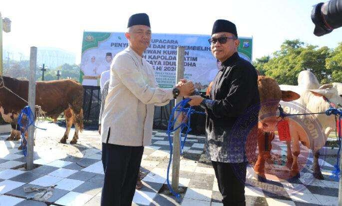 “Kemarin, Polda Jatim juga telah mendiskusikan, sebanyak 104 ekor sapi dan 17 kambing ke Pondok Pesantren, Yayasan Yatim Piatu, Asrama Polri, Mitra Polri dan Masjid serta Mushola diwilayah hukum Polda Jatim,” pungkas Kombes Dirmanto.