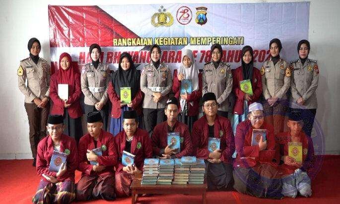Kapolres Mojokerto Kota AKBP Daniel S. Marunduri melalui Kasihumas, Ipda Agung mengatakan puluhan kitab suci Puluhan Al – Quran yang dibagikan oleh para Polwan Polres Mojokerto itu juga sebagai support untuk para santri.