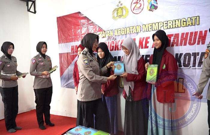 Kegiatan humanis yang dilaksanakan personel Polwan (Polisi Wanita) Polres Mojokerto Kota Polda Jatim ini digelar juga bertepatan dalam rangka rangkaian HUT Bhayangkara Ke-78.