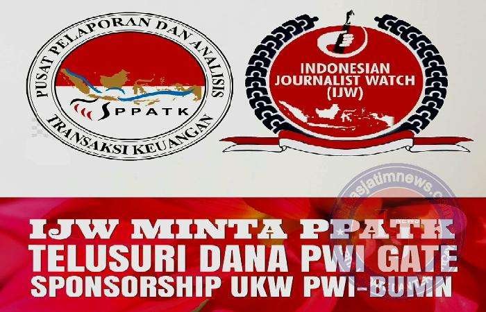 JAKARTA lintasjatimnews — Kasus PWI Gate, Korupsi dan atau penggelapan dana bantuan Sponsorship UKW PWI (Persatuan Wartawan Indonesia) dari BUMN yang melibatkan empat oknum pengurus PWI Pusat, terus bergulir. Kali ini Indonesian Journalist Watch (IJW) minta PPATK (Pusat Pelaporan dan Analisa Transaksi Keuangan) telusuri Transaksi Keuangan mereka.