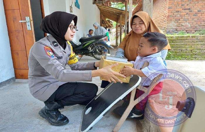 Polwan Polres Ponorogo yang bertugas di fungsi Bhabinkamtibmas ini rutin sambangi warga yang menyandang disabilitas untuk memberikan motivasi.