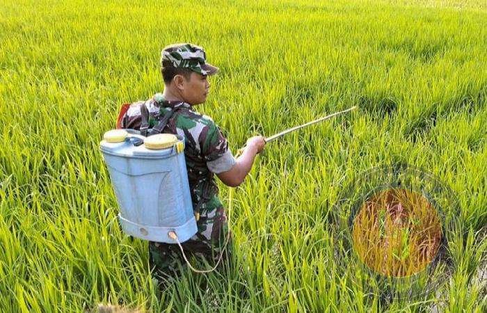 PACITAN lintasjatimnews – Untuk mengantisipasi serangan hama atau penyakit pada tanaman padi, Sertu Subani Babinsa Koramil 0801/04 Tegalombo Kodim 0801/Pacitan, membantu petani dengan menyemprotkan pestisida pada tanaman padi di lahan sawah yang berada di Desa Gemaharjo, Kec. Kebonagung, Kab. Pacitan, Rabu (19/06/2024).