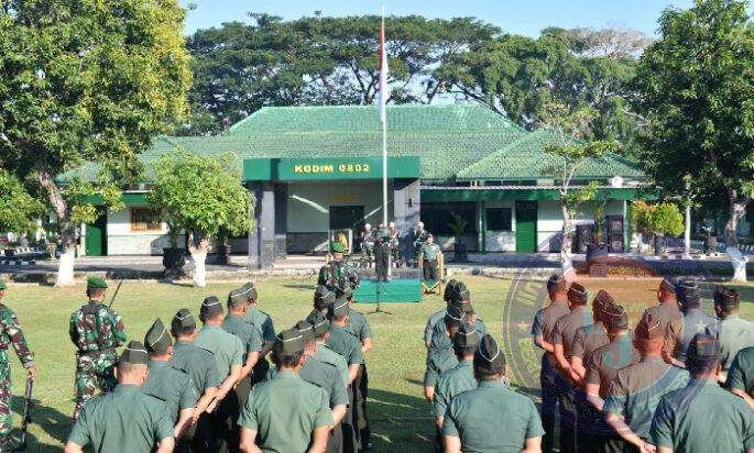 PONOROGO lintasjatimnews – Kodim 0802/Ponorogo tadi pagi menggelar Upacara Bendera Tujuh Belasan bertempat di lapangan Apel Kodim 0802/Ponorogo jalan Basuki Rahmat nomor 38 Kota / Kabupaten Ponorogo, Rabu (19/06/2024).