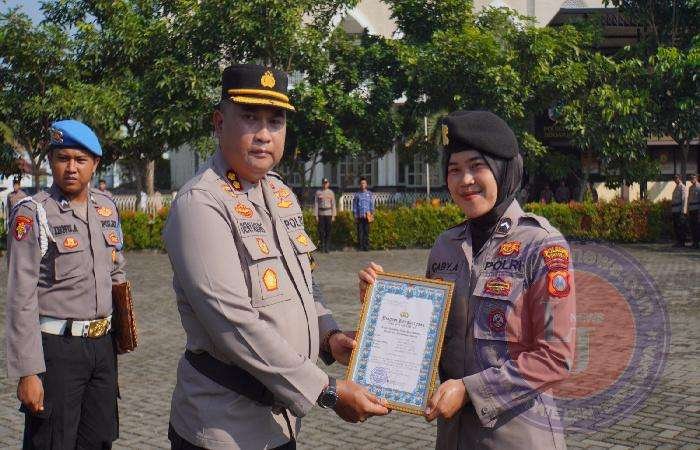 Pada kesempatan ini, juga diberikan penghargaan kepada anggota berprestasi yakni Polwan dari Sat Samapta Polresta Sidoarjo Bripda Gaby Dara Ayu Salsabillah.