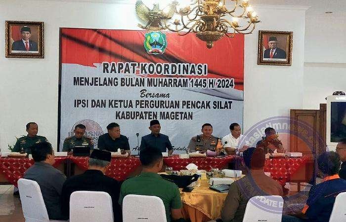 MAGETAN lintasjatimnews – Untuk mengantisipasi potensi konflik dan menjaga keamanan selama Bulan Muharram, Forum Koordinasi Pimpinan Daerah ( Forkopimda) Kabupaten Magetan menggelar rapat koordinasi ( Rakor ).
