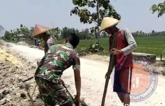 Anggota TNI Ngawi Melaksanakan Perbaikan Jalan Persawahan Bersama Warga Binaan