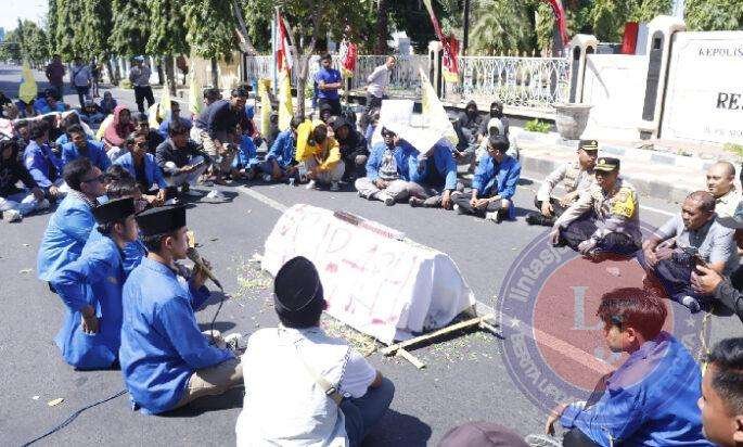 Kapolres Situbondo AKBP Dwi Sumrahadi Rakhmanto yang menemui peserta aksi tersebut juga mengikuti pembacaan doa dan tahlil bersama – sama para Mahasiswa.
