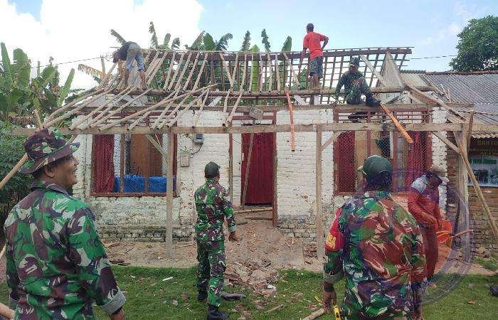 Melalui Koramil 0825/18 Purwoharjo renovasi rumah melibatkan seluruh komponen masyarakat untuk bersama bergotong royong memperbaiki rumah tersebut.
