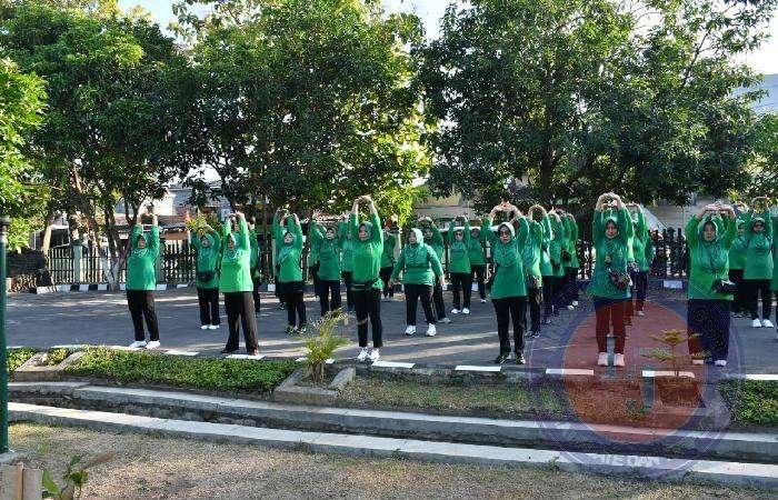 “ Selain tubuh sehat dan bugar, dengan berolahraga bersama seperti ini juga membawa manfaat yang luar biasa bagi kebersamaan anggota Persit Kartika Chandra Kirana Cabang XVI Kodim Ponorogo itu sendiri maupun dengan Bapak Bapak TNI di Kodim 0802/Ponorogo, “ jelas Ny. Dina Soerjono.