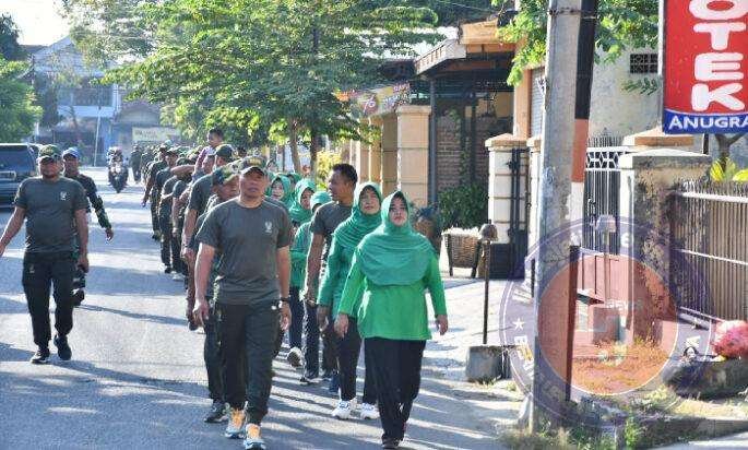 PONOROGO lintasjatimnews – Anggota Kodim 0802/Ponorogo dan Persit Kartika Chandra Kirana Cabang XVI Kodim Ponorogo tadi pagi menggelar kegiatan olahraga jalan santai dengan mengambil start dan finish di lapangan apel Kodim 0802/Ponorogo, Jumat (21/06/2024).