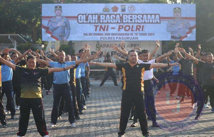 Kapolres Pasuruan AKBP Teddy Chandra, S.I.K., M.Si. mengatakan bahwa kegiatan Olahraga Bersama TNI-POLRI dalam rangka Hari Bhayangkara yang ke-78, bertujuan untuk menciptakan sinergitas antar TNI dan POLRI, guna terwujudnya situasi yang kondusif di wilayah Kabupaten Pasuruan.