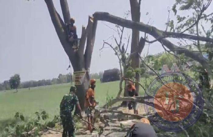 NGAWI lintasjatimnews — Untuk melancarkan transportasi dan mempererat hubungan antara TNI dan masyarakat, anggota TNI dari Koramil Paron kodim Ngawi bersama warga Desa Kebon, Kecamatan Paron, menggelar kerja bakti pembersihan pohon tumbang, Minggu (23/06/2024).