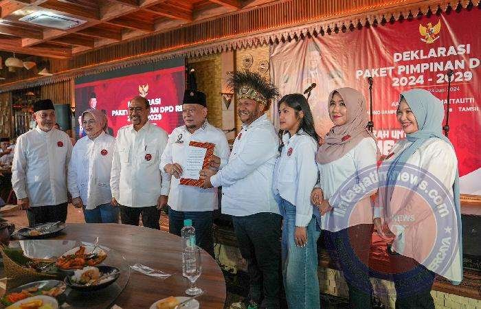 Dukungan tersebut dinyatakan dalam Deklarasi Paket Pimpinan DPD RI 2024-2029 yang dihelat di Telaga Senayan Restoran, Jakarta Pusat, Minggu (23/6/2024). Selain diisi dengan pembacaan pernyataan sikap dukungan, acara siang itu juga diisi dengan prosesi penandatangan dukungan dari para Anggota DPD RI masa bakti 2024-2029.