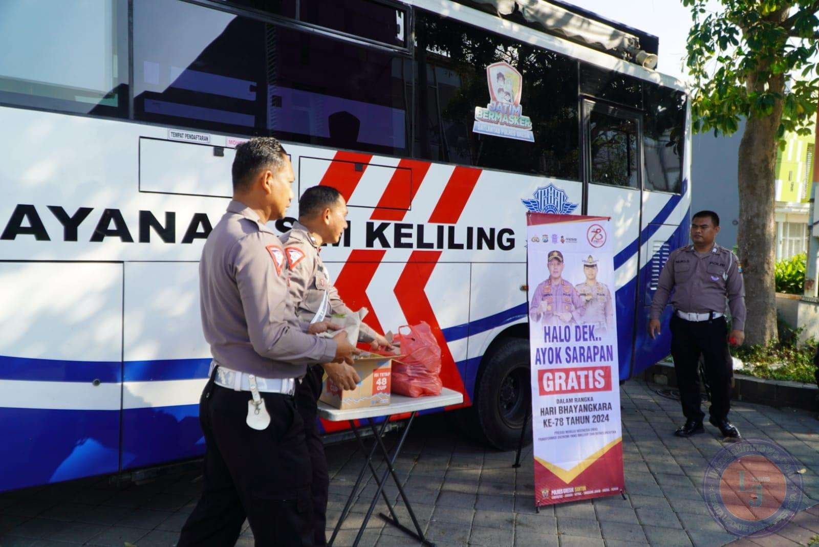 GRESIK lintasjatimnews.com – Dalam rangka menyambut Hari Bhayangkara ke-78, Satuan Lalu Lintas (Satlantas) Polres Gresik mengadakan kegiatan berbagi sarapan gratis kepada para pemohon SIM keliling. Kegiatan ini merupakan wujud kepedulian dan komitmen Satlantas Polres Gresik untuk memberikan pelayanan terbaik bagi masyarakat.Rabu(26-06-2024)