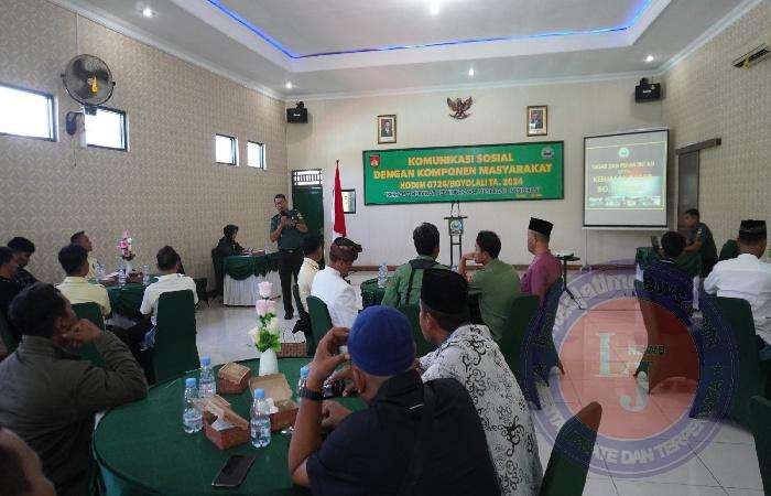 BOYOLALI lintasjatimnews – Untuk meningkatkan keeratan hubungan TNI-AD dengan segenap komponen masyarakat guna berpartisipasi pada bidang pertahanan, Kodim 0724/Boyolali menggelar kegiatan Komunikasi Sosial (Komsos) bersama Komponen Masyarakat yang bertempat di Aula Makodim 0724/Boyolali. Jl. Padanaran Desa Tegalmulyo Kecamatan Mojosongo Kabupaten Boyolali. Rabu (26/06/24)