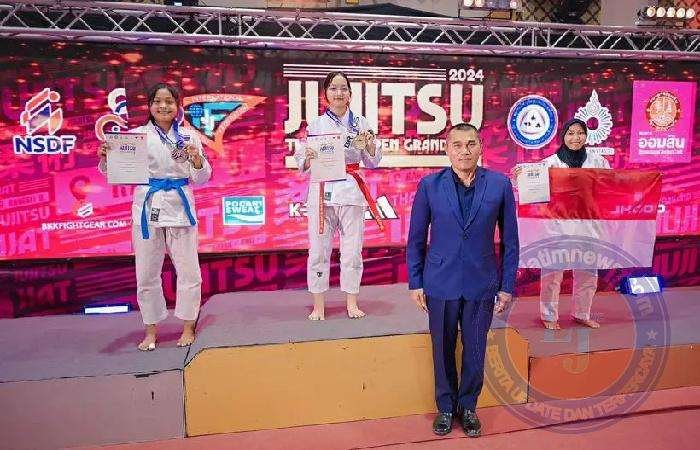 BANGKOK lintasjatimnews – Perguruan JuJitsu KJI (Koporyu JuJitsu Indonesia) dan WSDK (Women Self Defense of Koporyu) berhasil menyumbangkan dua medali emas pada ajang Kejuaraan Ju-Jitsu Grandprix Thailand Open yang berlangsung di Rangsit University, Bangkok, Thailand, 20-23 Juni 2024.