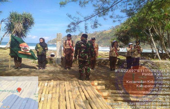 Sebagai wujud kecintaan terhadap kelestarian alam, Babinsa Koramil 0801/02 Kebonagung Kodim 0801/Pacitan bersama anggota saka wira kartika, melaksanakan karya bakti pembersihan lingkungan sekitar pantai Kali Uluh, yang berada di Desa Klesem, Kec. Kebonagung, Kab. Pacitan, Minggu (30/06/2024).