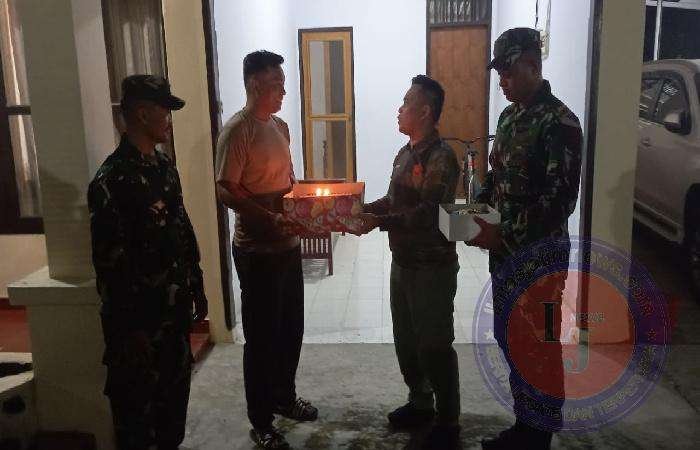 POSO lintasjatimnews – Dalam rangka memperingati Hari Ulang Tahun (HUT) Bhayangkara ke-78, Dandim 1307/Poso Letkol Inf Hasroel Tamin, S.H., M.Hub. Int bersama Danramil 1307-05 Kapten Inf Iston Sihotang, Danton 1 Kipan D Yonif 714/Sm Letda Inf Artedi Nur Kusumawan, S.Tr. Han, serta anggota Koramil 1307-05/Ampana Kota dan anggota Kompi Senapan D Yonif 714/Sm memberikan kejutan istimewa kepada Kapolres Touna AKBP Ridwan J.M Hutagaol, S.I.K., S.H. di rumah jabatan Kapolres Touna.(01/07/2024)