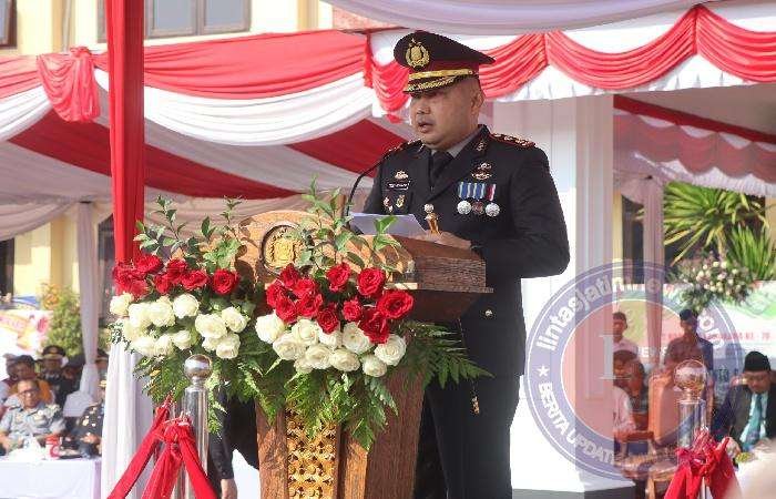 Upacara tersebut dipimpin oleh Inspektur Upacara (Irup) Kapolres Pasuruan AKBP Teddy Chandra, S.I.K., M.Si. dengan dihadiri oleh unsur Forkopimda Kabupaten Pasuruan, Pj. Bupati Pasuruan Dr. Andriyanto, S.H., M.Kes., Dandim 0819 Pasuruan, Danyonkav 8/NSW Kostrad Beji, pejabat Pemkab Pasuruan, Kajari Kabupaten Pasuruan, Kasatpol PP, Ketua PP Polri, Tokoh Adat, Tokoh Agama, Wakapolres, para PJU Polres, Bhayangkari Cabang Pasuruan, Personel dan jajaran TNI Polri Kabupaten Pasuruan, para Camat, para lurah, Kepala Desa dan para tamu undangan lainnya.