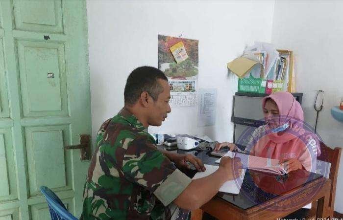 Serka Sugeng Risdiantoro, anggota Koramil Tipe B 0805/02 Paron Kodim Ngawi selaku Babinsa melaksanakan pendataan dalam rangka Program Keluarga Berencana di Polindes Ds. Dawu Kec. Paron, Selasa (02/07/2024).