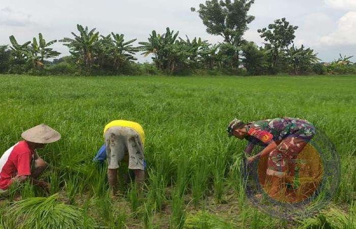 Peduli Pertanian Babinsa Bantu Cabuti Gulma pengganggu