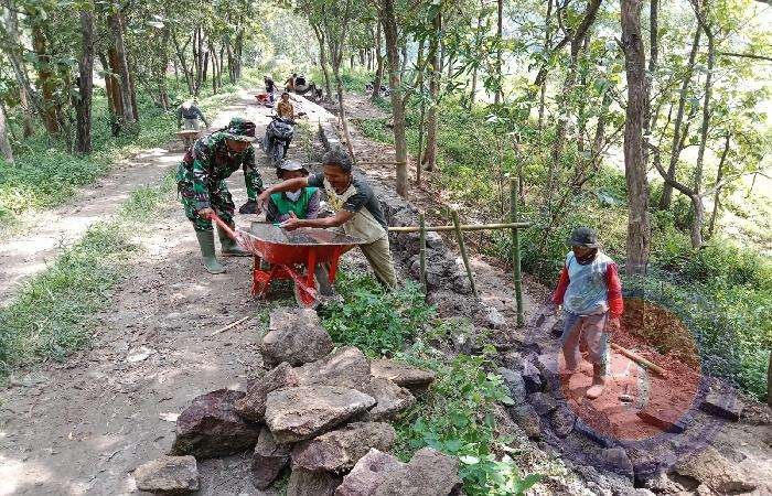 Saat di lokasi, terlihat jelas kekompakan gotong-royong saling bantu-membantu antara Babinsa bersama dengan warga setempat dalam pembuatan talud.