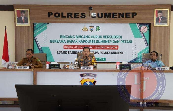 SUMENEP lintasjatimnews – Polres Sumenep menggelar kegiatan Bincang-Bincang Pupuk Bersubsidi bersama para petani di Lantai II Gedung Sanika Satyawada Polres Sumenep, Selasa, 16 Juli 2024.