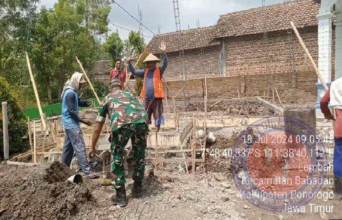 Seperti yang dilakukan oleh Serka Hariyanto salah satu anggota Koramil Tipe B 0802/03 Babadan, Kodim 0802/Ponorogo hari sedang melaksanakan kerja bakti bersama warga di wilayah desa binaan (Dukuh Telasih) Desa Lembah Kecamatan Babadan Kabupaten Ponorogo.
