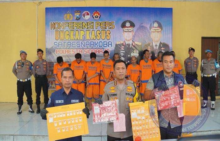 Kapolresta Sidoarjo Kombes. Pol. Christian Tobing, mengatakan para tersangka diamankan Satresnarkoba Polresta Sidoarjo di Pagerwojo, Buduran, Sawotratap, Gedangan, Perum Pondok Mutiara, Sidoarjo Kota dan Desa Kedungsolo, Porong serta di wilayah Pasuruan.
