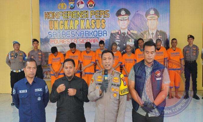 SIDOARJO lintasjatimnews – Satresnarkoba Polresta Sidoarjo berhasil meringkus Sembilan tersangka kasus peredaran dan penyalahgunaan narkotika.