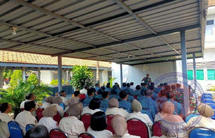 SURABAYA lintasjatimnews – Komandan Detasemen Markas (Dandenma) Pangkalan Utama TNI AL (Lantamal) V Letkol Marinir Fauzi Safi’i, S.A.P., M.Tr.Opsla memberikan jam komandan yang diikuti oleh seluruh anggota militer dan Pegawai Negeri Sipil (PNS) di jajaran Denma Lantamal V bertempat di halaman depan Mako Denma Lantamal V. Senin (22/07/2024).
