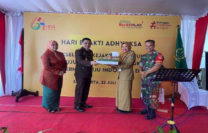 SURAKARTA lintasjatimnews – Dalam rangka memperingati HUT Bhakti Adhyaksa ke 64 Kejaksaan Negeri Surakarta, Babinsa Kelurahan Kepatihan Wetan Koramil 04/Jebres Kodim 0735/Surakarta Serda Budiono bersama dengan Lurah Kepatihan Wetan Ibu Enny Susilowati, SH,.MH mendatangi Kantor Kejaksaan Negeri Surakarta dan memberikan kejutan untuk merayakan acara syukuran HUT Bhakti Adhyaksa yang ke 64 th. Kejutan tersebut dilaksanakan sebagai wujud soliditas dalam bersinergi 4 pilar antara TNI, Polri, Pemerintahan dan Kejaksaan, Senin ( 22/07/2024 )