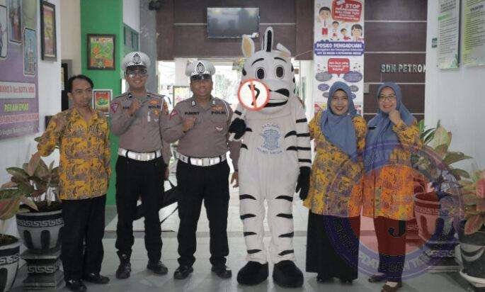 Ipda Andreas, Kanit Kamsel Sat Lantas Polres Gresik, menyampaikan materi dengan tema “Keselamatan Berlalu Lintas” kepada para siswa SDN Petrokimia Gresik. Ia berharap para siswa dapat menjadi pelopor keselamatan di jalan raya dan disiplin dalam berlalu lintas.