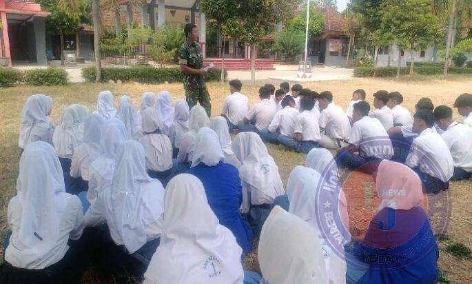 Tanamkan Rasa Cinta Tanah Air, Babinsa Pos Koramil Gerih Berikan Materi Wasbang kepada Murid SMPN 1 Gerih