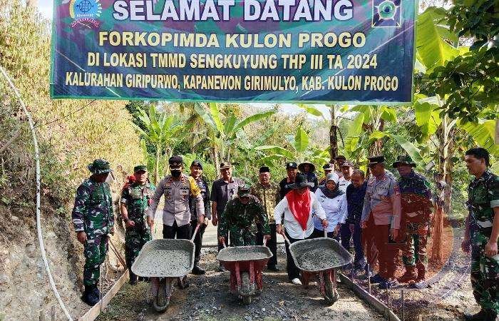 KULON PROGO lintasjatimnews – Selesai pelaksanaan Upacara Pembukaan TNI Manunggal Membangun Desa (TMMD) Sengkuyung Tahap III Tahun 2024 di Halaman Bali Kalurahan Giripurwo, Forkopimda beserta Pejabat lainnya meninjau lokasi sasaran fisik TMMD, di Padukuhan Penggung, Giripurwo, Girimulyo, Rabu (24/07/2024).