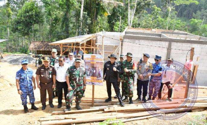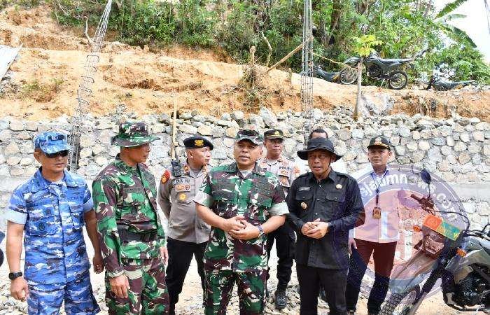 Dandim 0802/Ponorogo Letkol Inf Dwi Soerjono selaku Dansatgas TMMD ke 121 tahun 2024 memandu para undangan menunjukkan sasaran TMMD ke 121 tahun 2024 Kodim 0802/Ponorogo di Desa Selur Kecamatan Ngrayun yang menjadi target peninjauan.