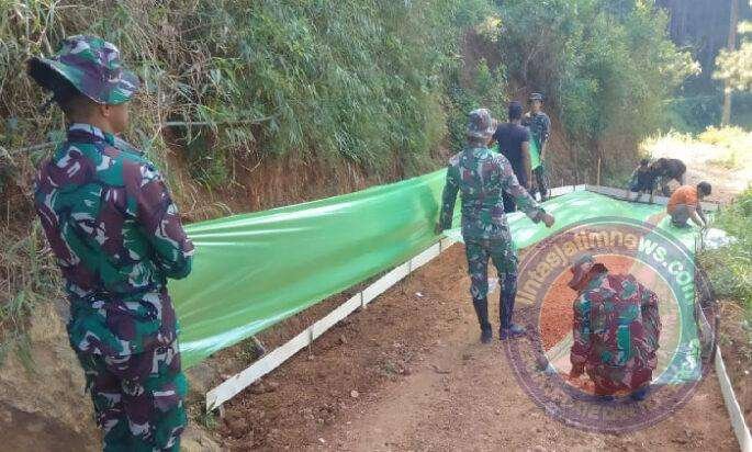 Dengan gembira penuh semangat gotong royong dan kebersamaan serta kekeluargaan semua anggota Satgas TMMD berbaur bersama warga mengerjakan semua sasaran yang sudah diberikan sesuai tanggung jawab masing – masing.