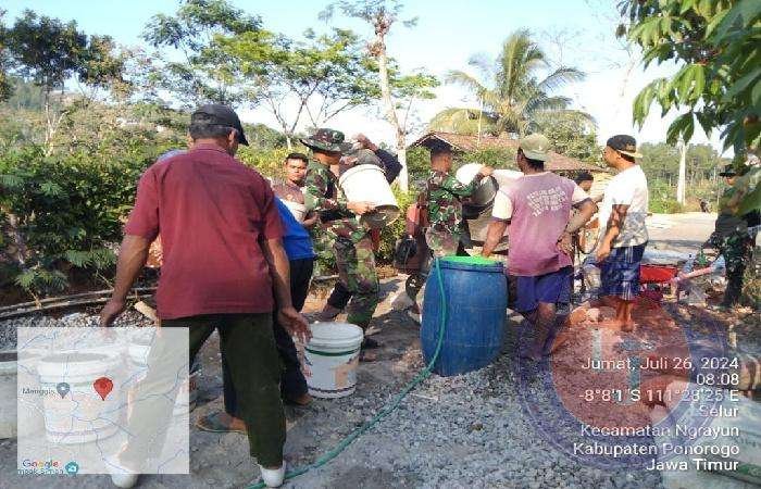 PONOROGO lintasjatimnews – Aktivitas atau kegiatan TNI Manunggal Membangun Desa (TMMD) ke 121 tahun 2024 Kodim 0802/Ponorogo di Desa Selur Kecamatan Ngrayun Kabupaten Ponorogo sudah berjalan dua hari sejak di buka pada hari Rabu (24/07/2024) di Lapangan Ngasinan Desa Selur, Jumat (26/07/2024).