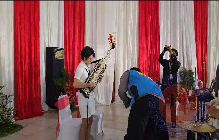 Calon taruni lainnya, yakni Regita Keysia, memainkan alat musik petik tradisional suku Dayak yakni Sape. Regita merupakan calon taruni asal pengiriman Polda Kalimantan Timur.